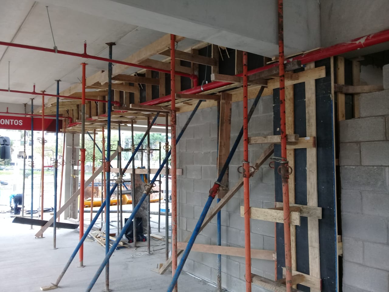 Reforço em pilares de concreto e Reforço na estrutura do telhado.